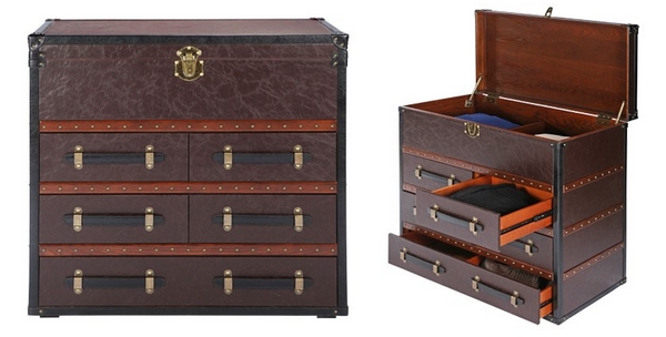 La malle commode, c’est un véritable meuble de rangement, tout de simili cuir vêtu, qui, en plus d’être ultra tendance, augmente considérablement votre capacité de rangement. Les amateurs de déco rétro vont craquer, un point c’est tout !