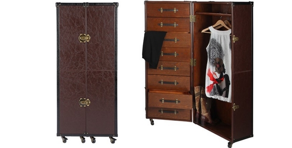 Cette malle de star mesure pas moins de 63 x 56 x 145cm et est entièrement recouverte de simili cuir. Ses 8 grands tiroirs et sa penderie de bonne taille accueilleront sans problème votre garde-robe, aussi importante soit-elle. Ergonomique, la malle penderie est équipée de roulettes pour faciliter les déplacements. Enfin il est tout de même recommandé de l’utiliser pour meubler votre intérieur et non pour vos prochaines vacances !