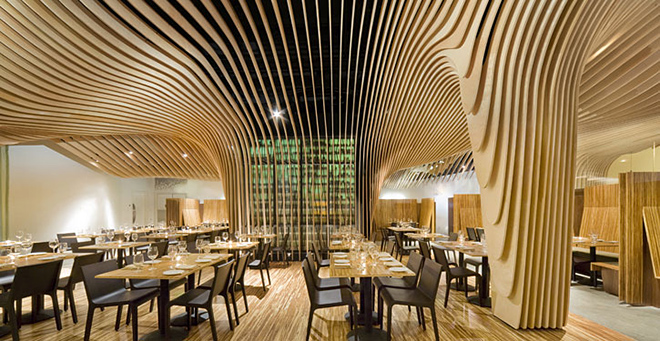 Pour la petite histoire, ce restaurant design s’inspire du « figuier des banians », l’arbre sacré des bouddhistes où se serait assis Bouddha lui-même, très réputé pour ses étonnants mouvements de racines. Le tout est très lumineux grâce à des couleurs claires et chaudes accentuées par une multitude de spots disséminés dans le plafond. Le résultat est à la fois saisissant, apaisant… zen…
