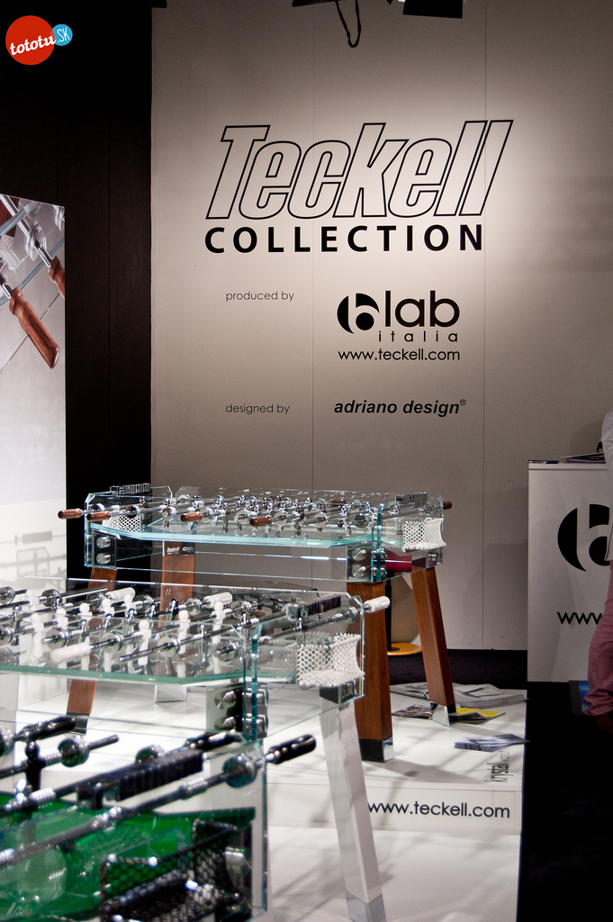 Avec la collection Teckell, il signe des modèles uniques où se côtoient le verre, l’aluminium et le bois, dans des visuels ultra modernes et épurés. Façonnés à la main par des artisans qui savent marier à la perfection art et technique, ces babys sont de vraies petites merveilles de technologie et de design. Un régal pour les yeux qui aurait plus sa place au milieu d’un salon design que dans un café des sports ! Découvrez de nombreux autres modèles de babyfoot en verre sur le site du constructeur : B. lab Italia